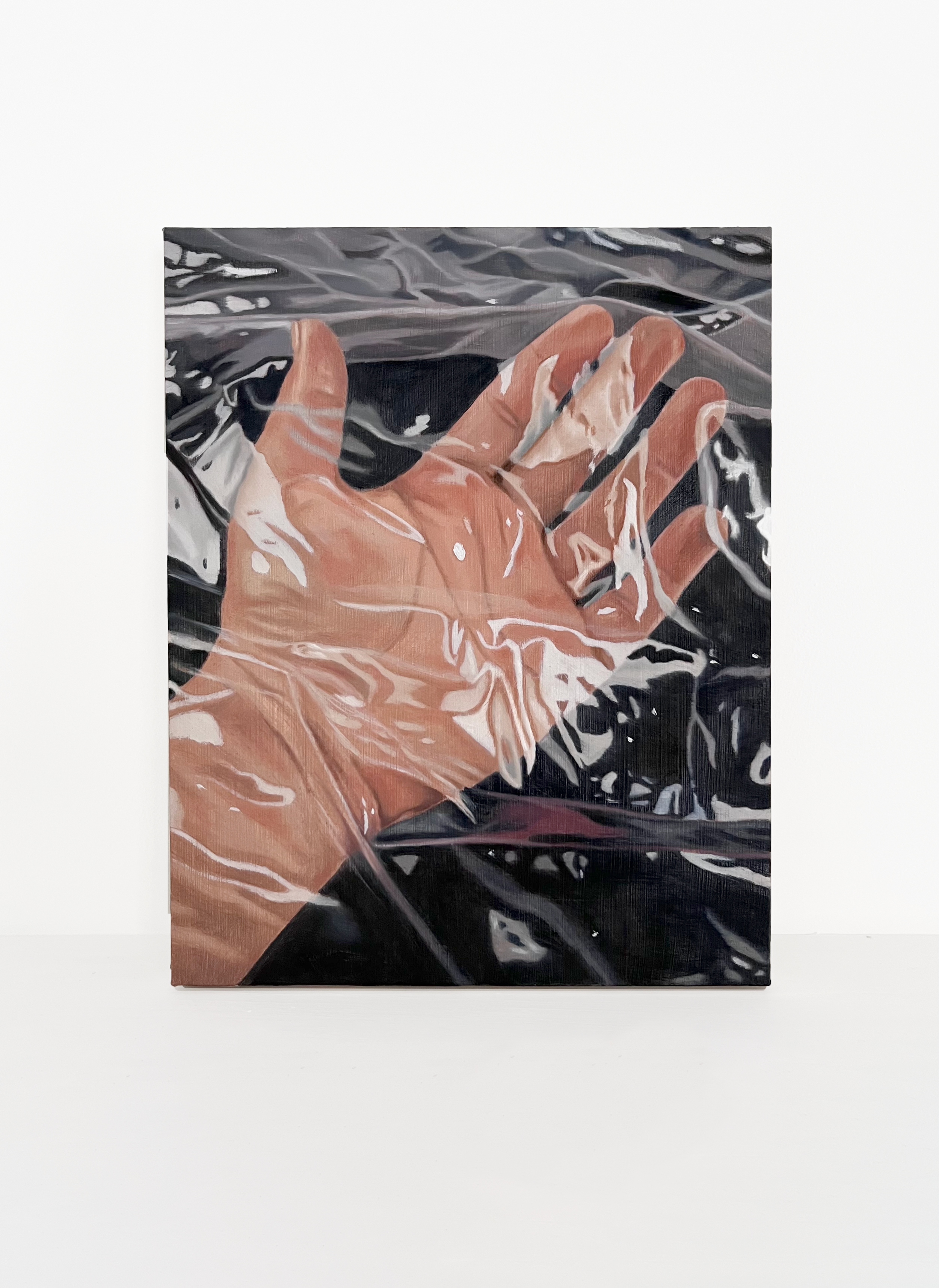 "Cellophane" peinture à l'huile sur bois, 20x27cm, 2025