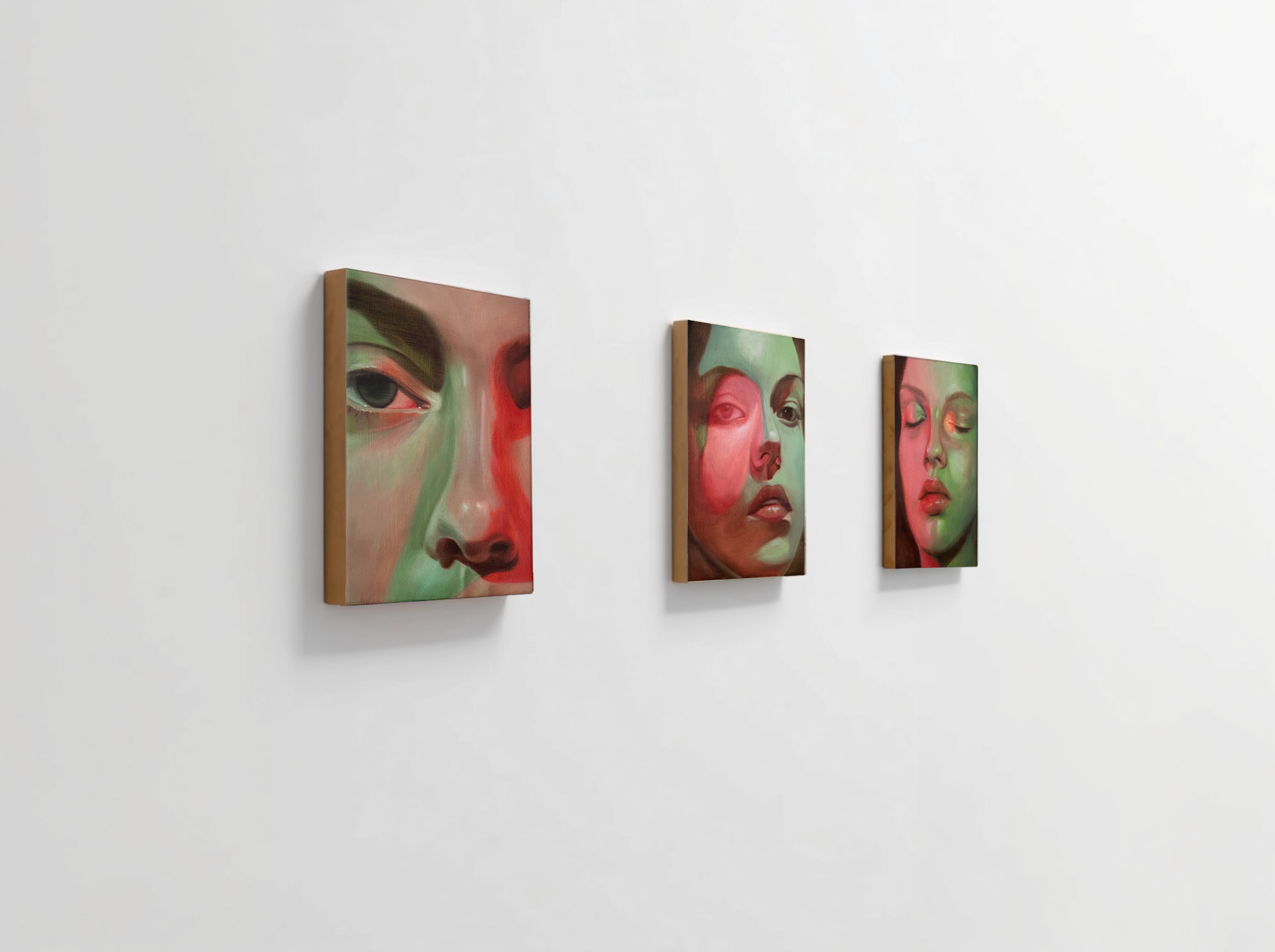 "Caméléon 4", "Caméléon 2", "Caméléon 1" peinture à l'huile sur bois, 16x22cm, 2025